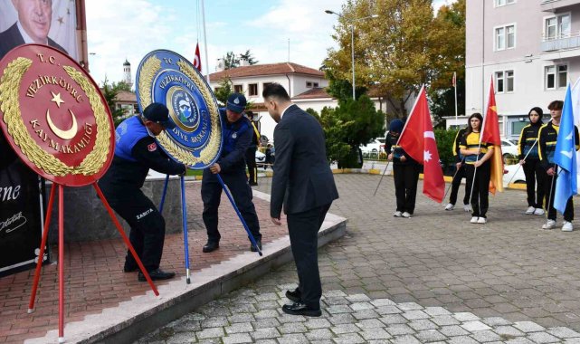 Samsun'un Vezirköprü ilçesinde Cumhuriyet'in 102. yılı dolayısıyla Atatürk Anıtı'na çelenk sunma töreni düzenlendi.