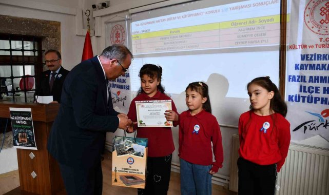 Samsun'un Vezirköprü ilçesinde Kütüphane Haftası etkinlikleri kapsamında düzenlenen programda, en çok kitap okuyan öğrenciler ödüllendirildi.