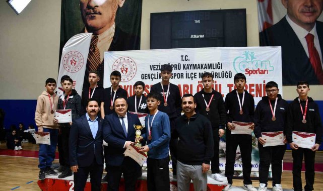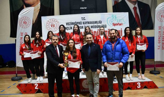 Samsun'un Vezirköprü ilçesinde okul sporları kapsamında yapılan müsabakalarda dereceye giren öğrenciler, düzenlenen törenle ödüllerine kavuştu.