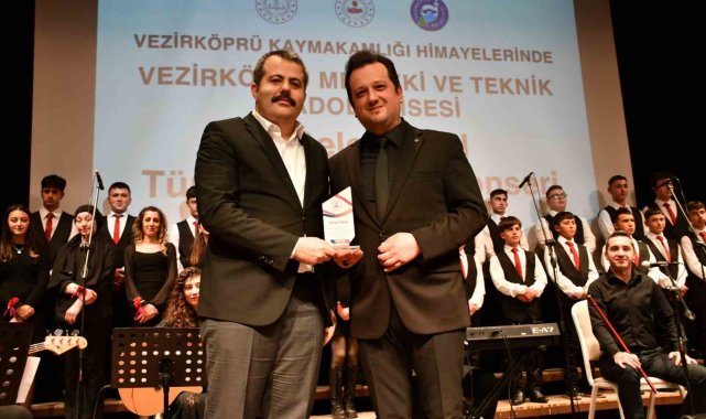 Vezirköprü MTAL öğretmen ve öğrencilerinden oluşan Türk Halk Müziği Korosu, Belediye Kültür Merkezi'nde sahneye çıktı. Konserde İlçe Kaymakamı Özgür Kaya, koro şefi Sertan Turan'a özverili çalışmaları ile keyifli bir müzik dinletisi sundukları için teşekkür ederek plaket verdi.