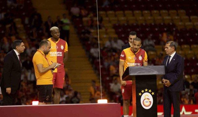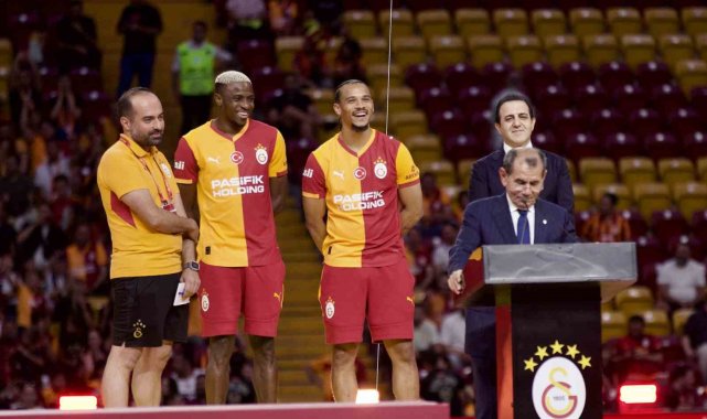 Galatasaray, yeni transferleri Nijeryalı futbolcu Victor Osimhen ve Alman futbolcu Leroy Sane için stadyumda sarı-kırmızılı taraftarların önünde imza töreni düzenledi.