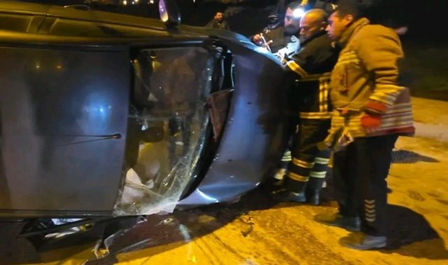 Vidanjöre çarparak devrilen otomobilin sürücüsü yaralandı