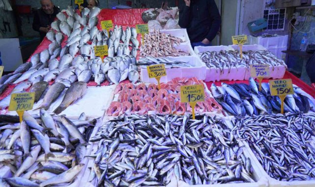 Balık tezgahlarında mezgit kilo 200 TL, hamsi kilo 150 TL, istavrit kilo 150 TL, levrek-çipura kilo 320 TL, kalkan kilo 700 TL, somon kilo 180 TL, alabalık kilo 150 TL, barbun kilo 200 TL, kefal kilo 100 TL ve Norveç somonu kilo 230 TL'den satışa sunuluyor.