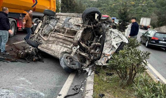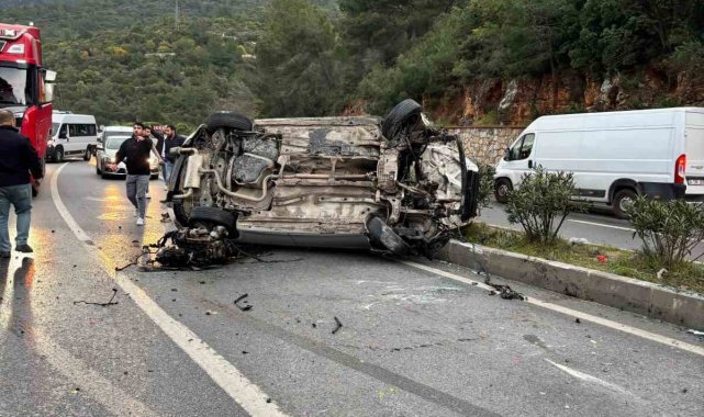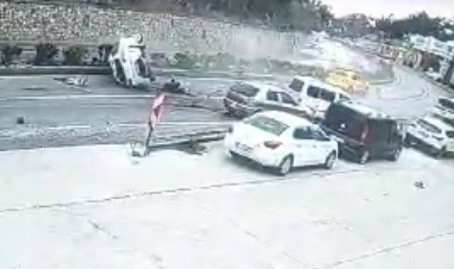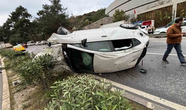 Muğla'nın Bodrum ilçesinde virajı alamayan otomobil refüje çarpıp karşı şeride geçerek taksiyle çarpıştı. O anlar güvenlik kamerası tarafından anbean kaydedildi.