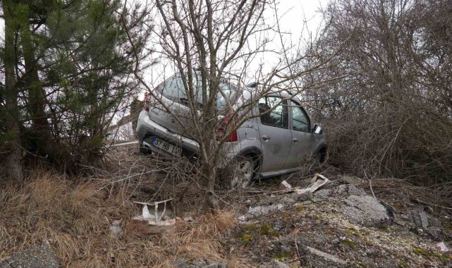 Virajı alamayan otomobil ağaçlara çarparak durabildi: 3 yaralı