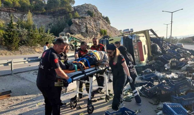 Burdur-Fethiye karayolunda virajı alamayan sebze yüklü kamyonun refüje devrilmesi sonucu 1 kişi yaralandı.