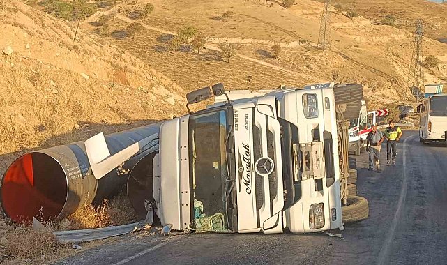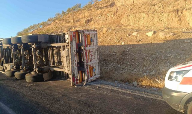 Virajı alamayan tır devrildi