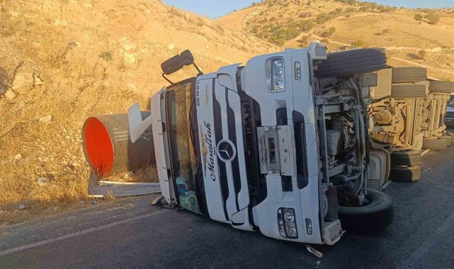 Siirt'te viraj alamayarak sürücüsünün kontrolünden çıkan tır devrildi.