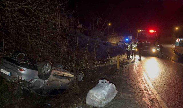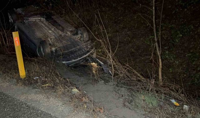 Düzce'de virajı alamayıp takla atan otomobil kanala uçtu. Kazada sürücü burnu bile kanamadan araçtan çıktı.