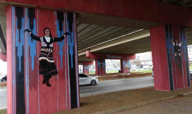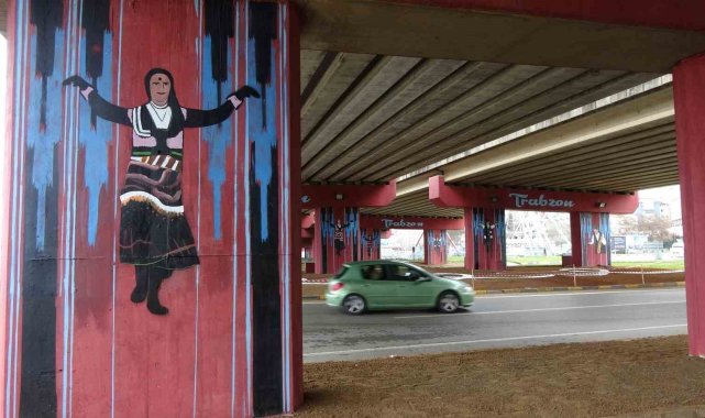 Trabzon en önemli şehir içi geçiş güzergahı olan Ayasofya viyadükleri duvarlarına şehri simgeleyen figürlerin yapılması dikkat çekiyor.