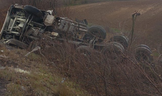 Vize-Soğucak Köyü yolunda petrol tankeri devrildi