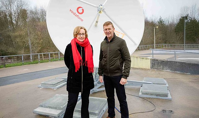 Astronot Tim Peake ve Vodafone Grup CEO'su Margherita Della Valle, Vodafone'un yeni uzaydan kara geçiş noktasında bu önemli dönüm noktasını kutladılar. Bu nokta, kullanıcının akıllı telefonundan gelen tüm sinyalleri Vodafone'un ortağı AST SpaceMobile'ın BlueBird uyduları aracılığıyla alıp yönlendiriyor. Vodafone mühendisi Rowan Chesmer, tarihî uzay tabanlı video görüşmesini, Galler'in uzak dağlık bir bölgesinde, daha önce mobil genişbantın olmadığı bir yerde gerçekleştirdi. Rowan, 2017 yılında Vodafone'un mezuniyet programına katıldı ve şu an küresel bağlantıyı geliştirecek kesintisiz uydu teknolojileri üzerinde çalışıyor.