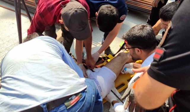 Vücuduna demir saplanan işçiyi itfaiye ekibi kurtardı