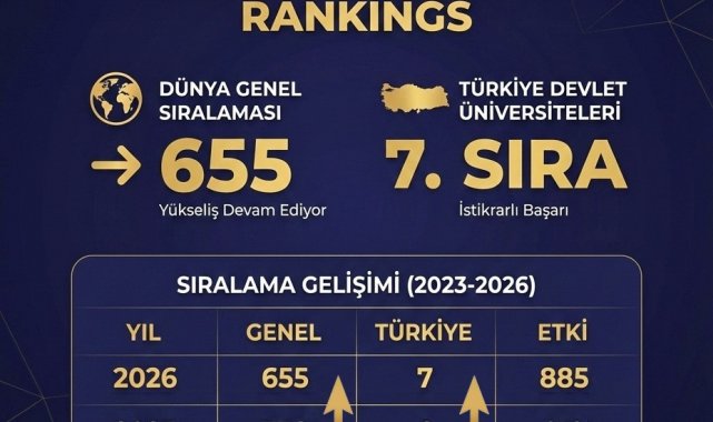 Açıklanan veriler, Atatürk Üniversitesinin son yıllarda sergilediği istikrarlı yükseliş ivmesini çarpıcı bir şekilde ortaya koydu. 2023 yılında dünya sıralamasında 1843. sırada yer alan üniversite, 2024'te 813'e, 2025'te 738'e ve en son 2026 raporunda ise 655. sıraya yükselerek sadece üç yıl içerisinde yaklaşık bin 200 basamak birden tırmanmış oldu.