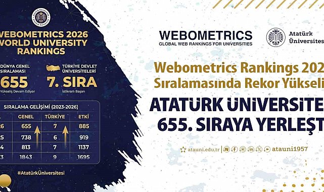 Dünyanın en prestijli yükseköğretim derecelendirme kuruluşlarından biri olan Webometrics Rankings, 2026 yılı dünya üniversite sıralamalarını açıkladı. Son yıllarda akademik üretkenlik ve dijital görünürlük alanında büyük bir atılım gerçekleştiren Atatürk Üniversitesi, 2025 yılındaki başarısını bir üst seviyeye taşıyarak dünya genel sıralamasında 655. bandına yükseldi.