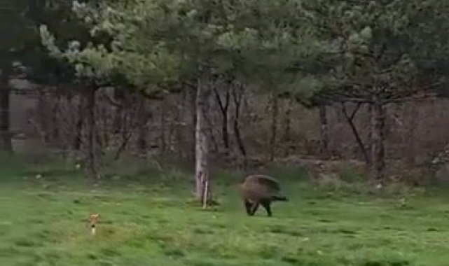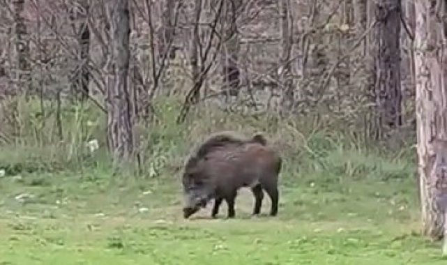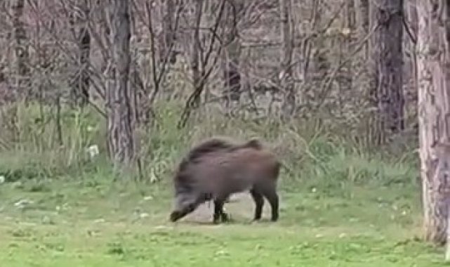 Edirne'de Trakya Üniversitesi Balkan Yerleşkesi çevresinde görüntülenen bir yaban domuzu, öğrenciler arasında esprili yorumlara sebep oldu.