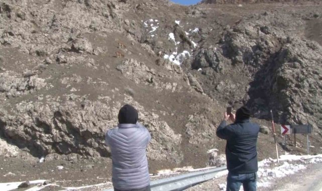 Yaban keçileri karayolu kenarına kadar indi