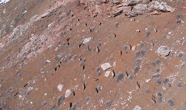 Rakımı yüksek bölgeleri beyaza bürüyen kar nedeniyle yaşam alanlarına kadar inen yaban keçileri bu kez karayolu üzerinde görüldü. Yaban keçileri yiyecek bulabilmek için karayolu kenarına kadar indi. Karlı bölgelerden karsız bölgelere kadar inen onlarca yaban keçisi yiyecek arıyor. Adıyaman'da ki yaban keçisi sayıları 3 binin üzerinde olduğu biliniyor. Dağ keçilerini görerek araçlarından inen vatandaşlar, "Arabayla geçiyorduk yolda yaban keçilerine rast geldik, gerçekten çok mükemmel bir manzara" diye konuştu.