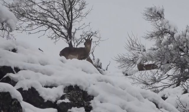 Adıyaman'da sayıları 3 binin üzerinde olan yaban keçileri yoğun kar yağışından olumsuz etkileniyor. Kar kalınlığının yarım metreyi geçtiği bölgelerde yiyecek bulmakta zorlanan yaban keçileri çareyi rakımı yüksek yerlerden düşük yerlere inmekte buluyor. Yaban keçileri karlı bölgeden karsız bölgelere giderek yiyecek arıyor.