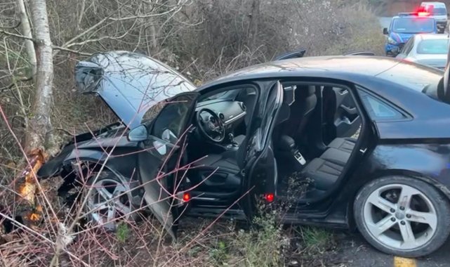 Yabancı uyruklu şahısların içinde bulunduğu otomobil ağaca çarptı: 1 yaralı