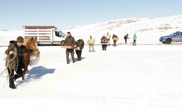 Çetin kış koşullarının hüküm sürdüğü Ardahan'da, yem bulmakta zorlanan yabani hayvanlar için yemleme çalışması yapıldı.