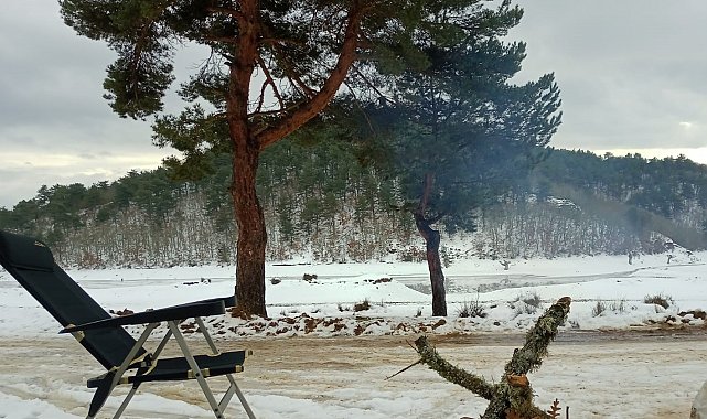Karla kaplanan gölet çevresi, Osmaneli'nin doğal zenginliğini bir kez daha gözler önüne serdi.
