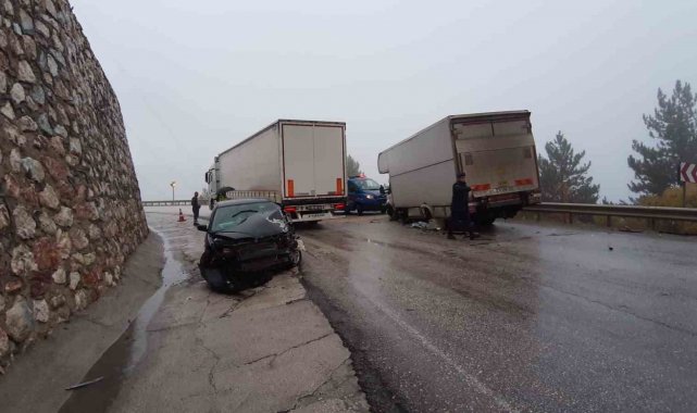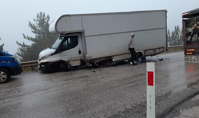 Bolu'da yağmurun etkisiyle kayganlaşan yolda otomobil ile karavan çarpıştı. Kazada otomobil sürücüsü hafif yaralandı.