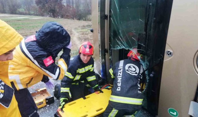Denizli'nin Buldan ilçesinde seyir halindeki tır, yağmur sonrası kayganlaşan yolda kontrolünü kaybederek devrildi. Devrilen tırda maddi hasar oluşurken sürücü ekipler tarafında kurtarılarak hastaneye sevk edildi.