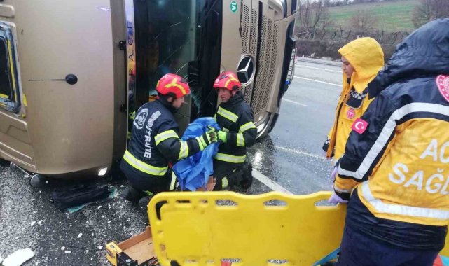Kısa sürede olay yerine gelen itfaiye ekipleri, devrilen tırda mahsur kalan yaralıyı ön camı kırarak çıkarıp sağlık ekiplerine teslim etti. Sağlık ekipleri sürücüye olay yerinde ilk müdahaleleri yaptıktan sonra ambulans ile hastaneye sevk etti. Hastaneye sevk edilen yaralının durumu iyi olduğu öğrenildi.