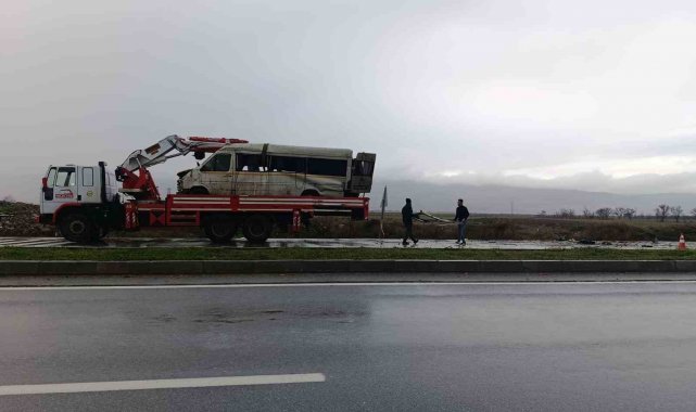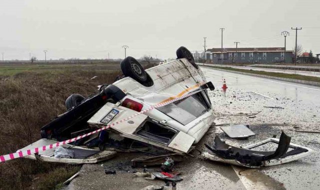 Yağış sonrası kayganlaşan yolda taklalar atan transit hurdaya döndü: 2 yaralı