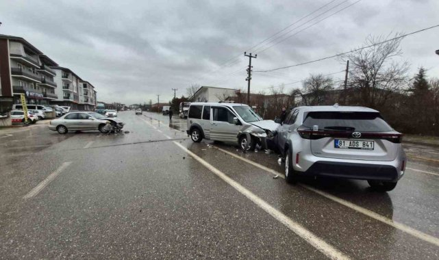 Yağış yüzünden kayganlaşan yolda 3 araç kazaya karıştı