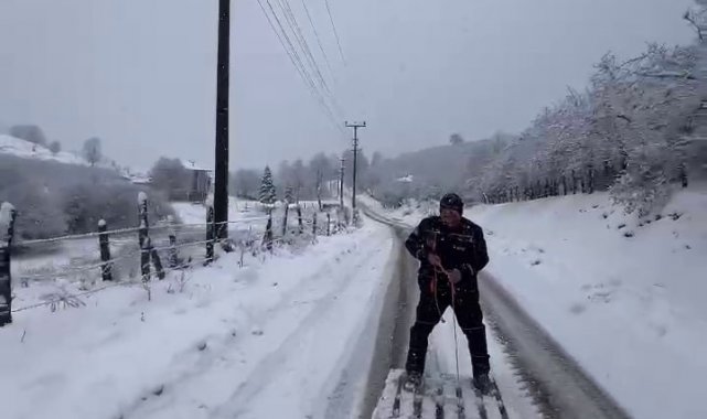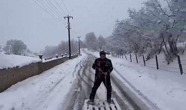 Meteoroloji Genel Müdürlüğü'nün uyarıları sonrasında Sakarya genelinde yoğun kar yağışı etkili oldu. Şehrin yüksek kesimlerinde bazı sokaklar ve grup yolları beyaz örtüyle kaplandı. Kurudere Mahallesi'nde ise kapanan yolda traktörün arkasına bağladığı ipe tutunan vatandaş, ahşap paletle kayak yaparak anın tadını çıkardı. O anlar saniye saniye cep telefonu kamerasına yansıdı.