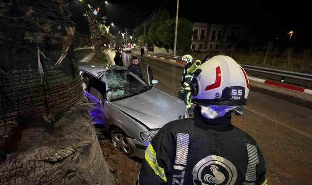 Denizli'nin Buldan ilçesinde yağış nedeniyle kayganlaşan yolda otomobilin refüje çıktığı kaza ucuz atlatıldı.
