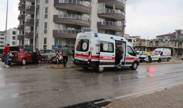 Denizli'de yağışlı hava ve sürat nedeniyle meydana gelen kazada 3 araç birbirine girdi. 2 aracın kullanılamaz hale geldiği kazada 1'i ağır 8 kişi yaralandı.