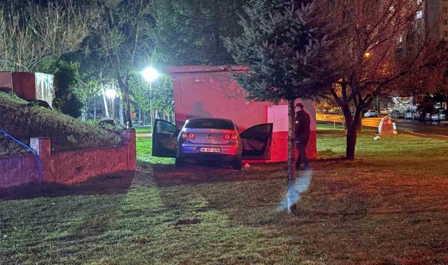 Kayseri'nin Melikgazi ilçesinde yağışlı havada kontrolden çıkan otomobil, parka girerek temizlik malzemelerinin bulunduğu depoya çarptı. Kazada deponun duvarı yıkılırken, araç hasar gördü.