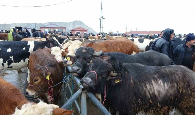 Yozgat'ın Sorgun ilçesinde bulunan canlı hayvan pazarı, yağışlı havaya rağmen üretici ve alıcıları buluşturuyor.