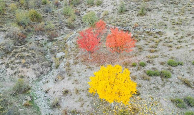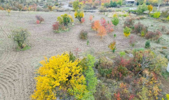 Afyonkarahisar'da sonbahar mevsiminin tüm güzellikleri yaşanmaya devam ederken, Büyükkalecik bölgesinde çekilen bir görüntü ise görenleri adeta mest etti. Renklerin cümbüşünün yaşandığı görüntülerde ortaya çıkan manzara ise adeta yağlı boya tablolarını taş çıkarttı.