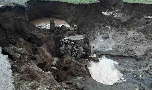 Yağmur sonrası yolda 4 metre derinliğinde çukur oluştu
