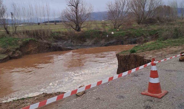 Afyonkarahisar'ın Sandıklı ilçesinde yaşanan aşırı yağışlar sonrası köyü birbirine bağlayan yolda çökme meydana geldi, yol güvenlik gerekçesiyle ulaşıma kapatıldı.