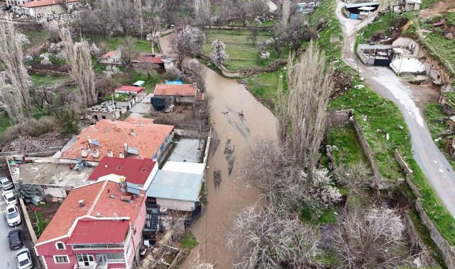 Kayseri'de etkili olan sağanak yağışlarla birlikte dolan sulama kanalları, bahar mevsimi ile beraber görsel şölen oluşturdu.