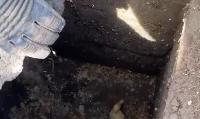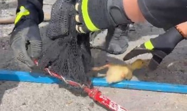 Sivas'ta yağmur suyu tahliye hattına düşen yavru ördek, itfaiye ekiplerince kurtarıldı.