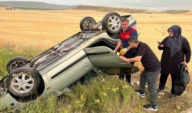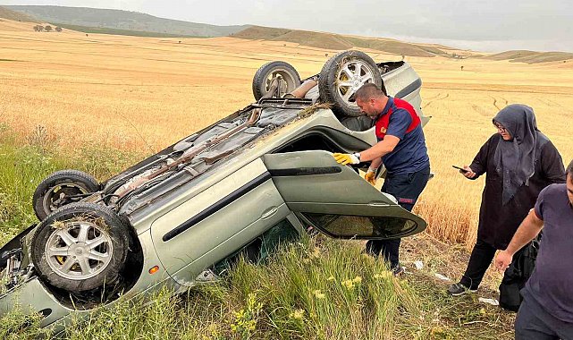 Yağmurun kayganlaştırdığı yolda otomobil takla attı: 3 yaralı