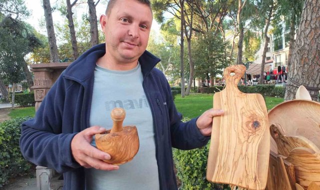 Yakacak olarak kullanılan zeytin odunlarını mutfak gereçlerine dönüştürüyor