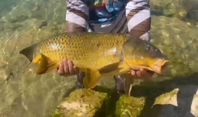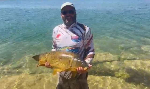 Yakaladığı 15 kiloluk sazanı tekrar suya bıraktı