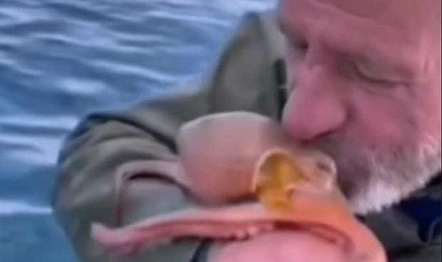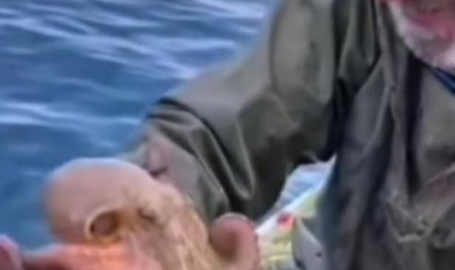 Yakaladığı ahtapotu öpüp sevdi, denize bıraktı