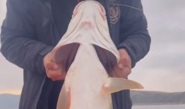 Elazığ'da bir balıkçının Keban Baraj Gölü'nde yakaladığı yaklaşık 30 kilo ve 1,5 metre uzunluğundaki dev Fırat turnası, görenleri hayretler içinde bıraktı. Yakaladığı balığı görünce gözlerine inanamayan vatandaş, ''Ejderha, bu adam yer'' ifadelerini kullandı.