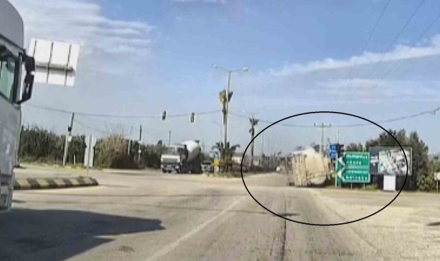 Hatay'da dönüş yaptığı esnada devrilen tankerin portakal bahçesine uçtuğu anlar araç kamerasına yansıdı.