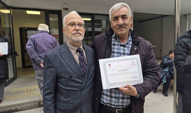 Eskişehir Valisi Dr. Erdinç Yılmaz, yaklaşık 40 yıldır bağımlısı olduğu ve günde 3 paket içtiği sigarayı 1 haftada bırakan 58 yaşındaki Nevzat Karaca'ya plaket takdim etti.