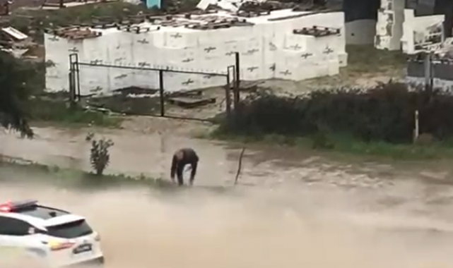 Yalova'da daha önce de su baskını sonucu ölümlü kazaların yaşandığı kara yolunda, cansiparane şekilde suyu boşaltan vatandaş, yaşanabilecek bir felaketin önüne geçti.