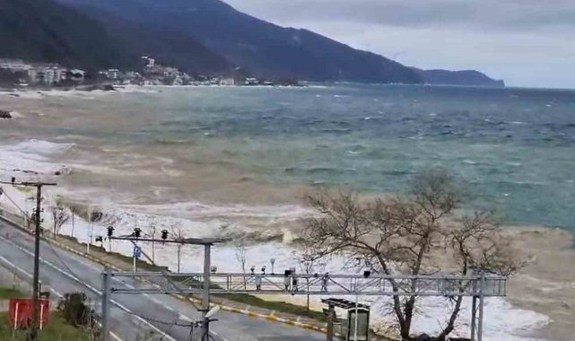 Yalova'nın Çınarcık ilçesi Esenköy beldesinde etkili olan fırtınada dev dalgalar adeta kıyıyı dövdü. Sular altında kalan sahil yolu trafiğe kapanırken dalgalar nedeniyle bazı evlerde su baskını yaşandı.